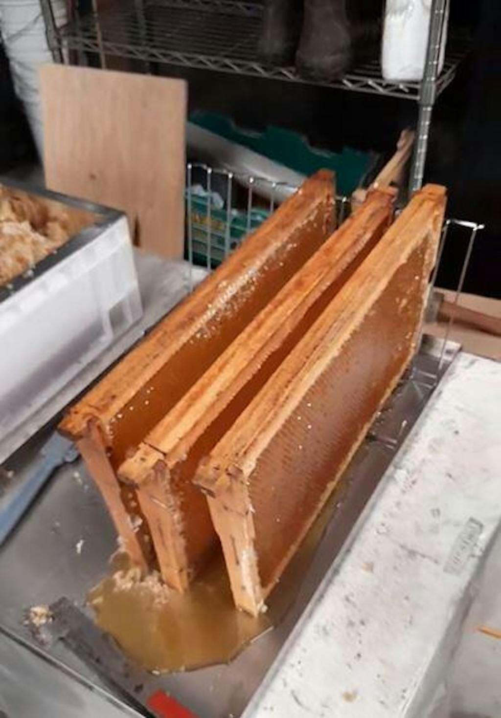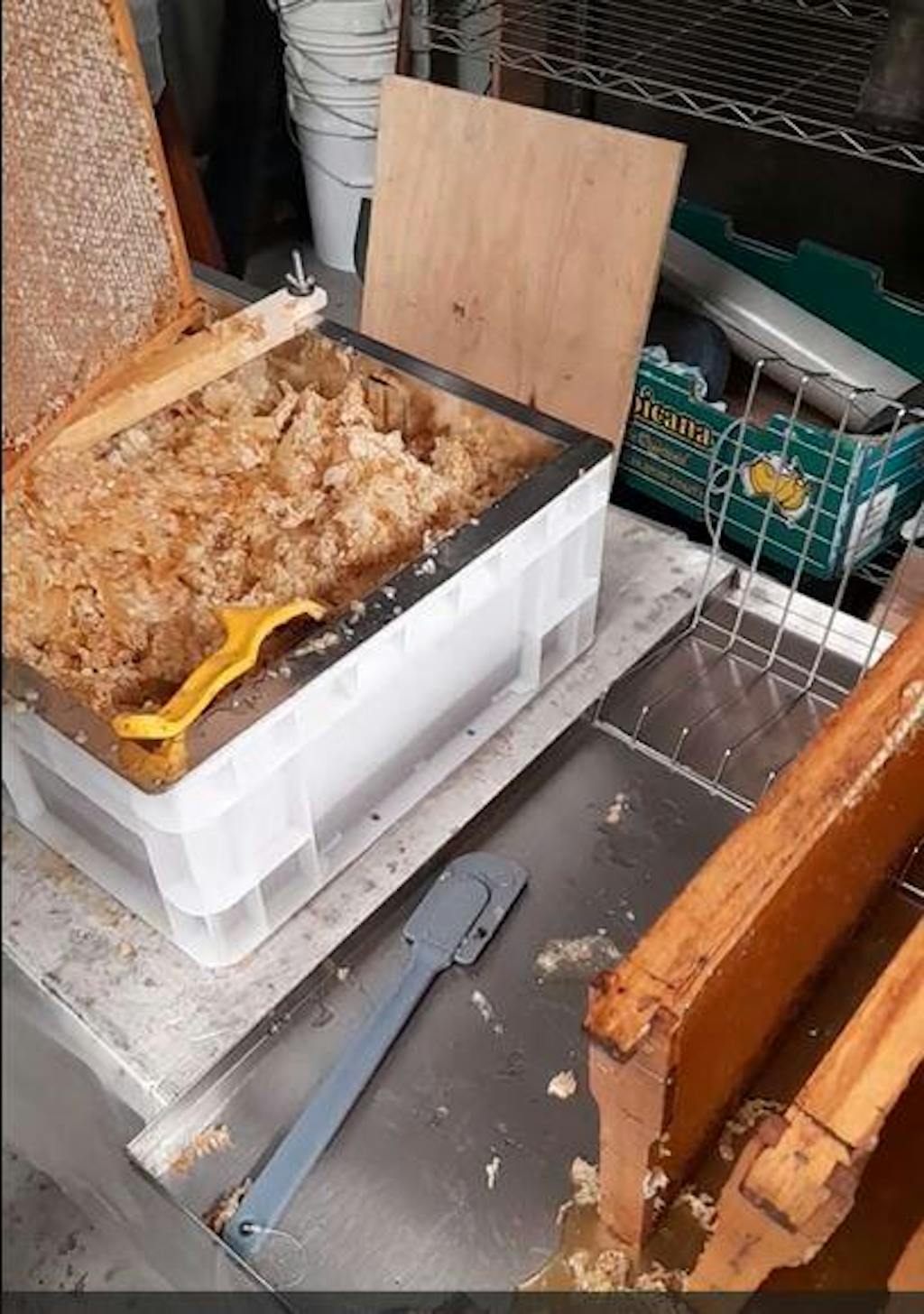 Using either method the wax cappings and any debris collect on the perforated stainless steel grate allowing the honey to drip and collect in the plastic tub which can then be dispensed through the included honey gate.
